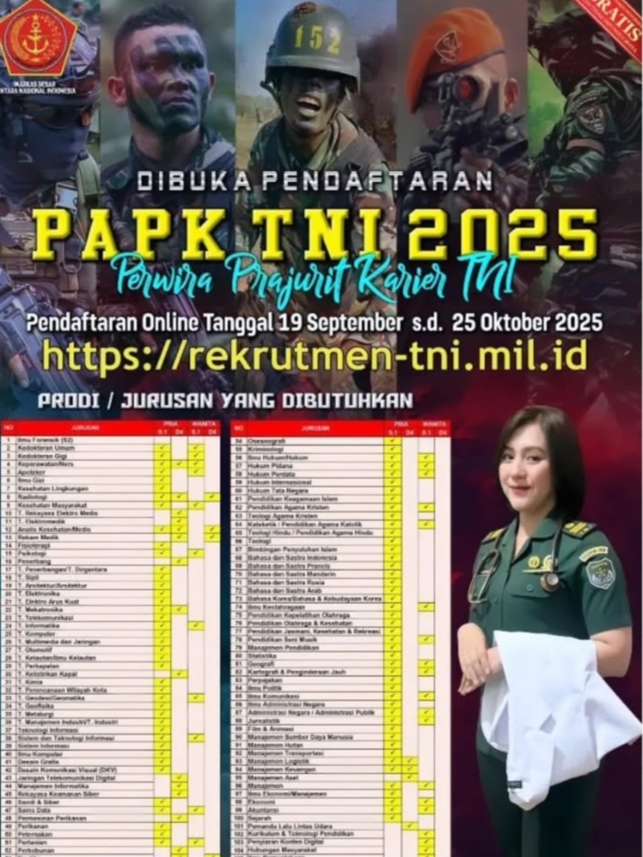 Berita Nasional // Tentara Nasional Indonesia (TNI) membuka kembali pendaftaran Perwira Prajurit Karier (Pa PK) TNI Reguler Tahun Anggaran 2025.…